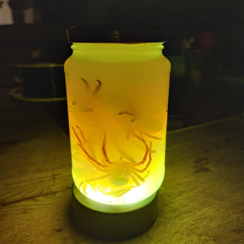 Spiderlamp, water, fluorescent marker, water, yar